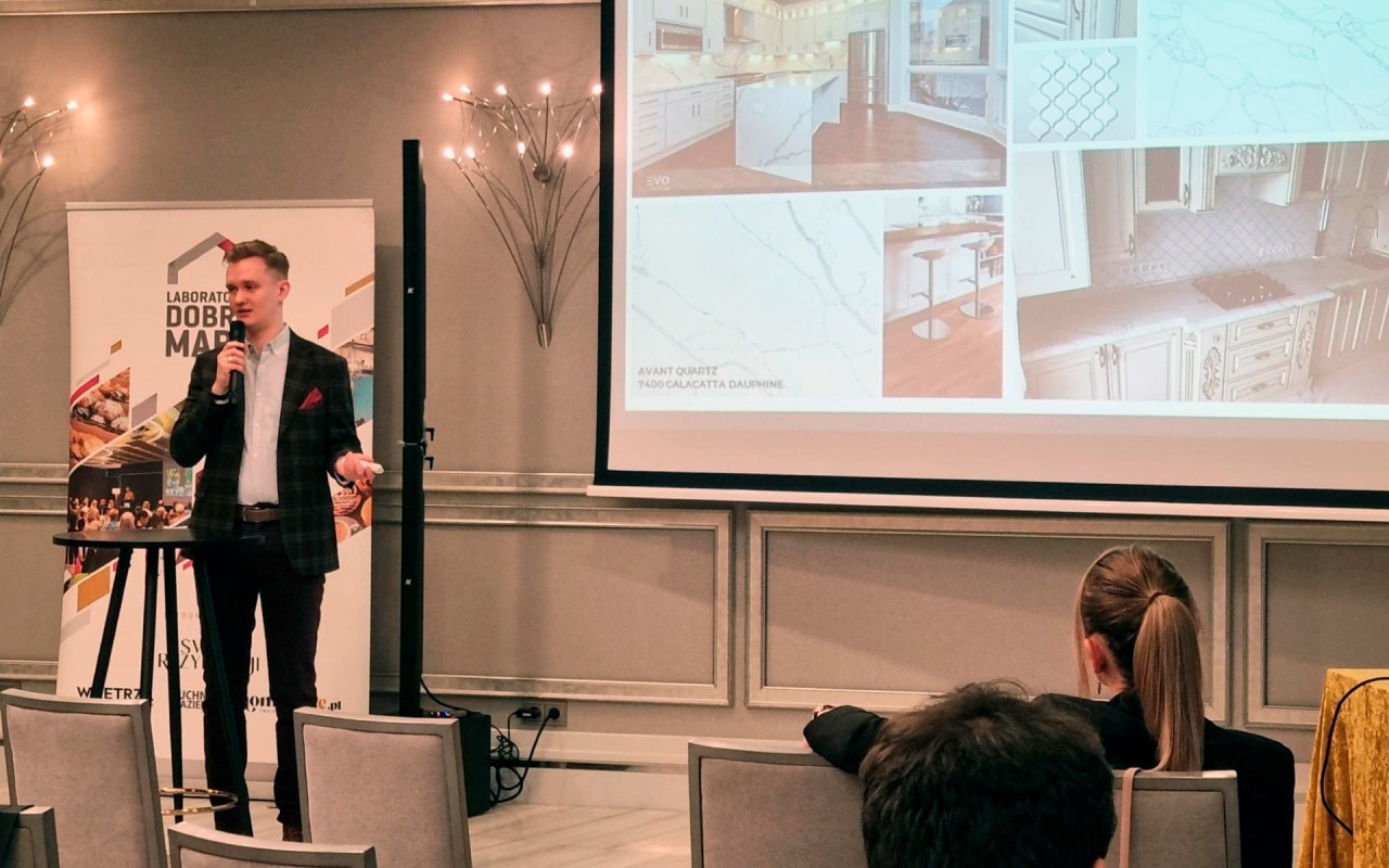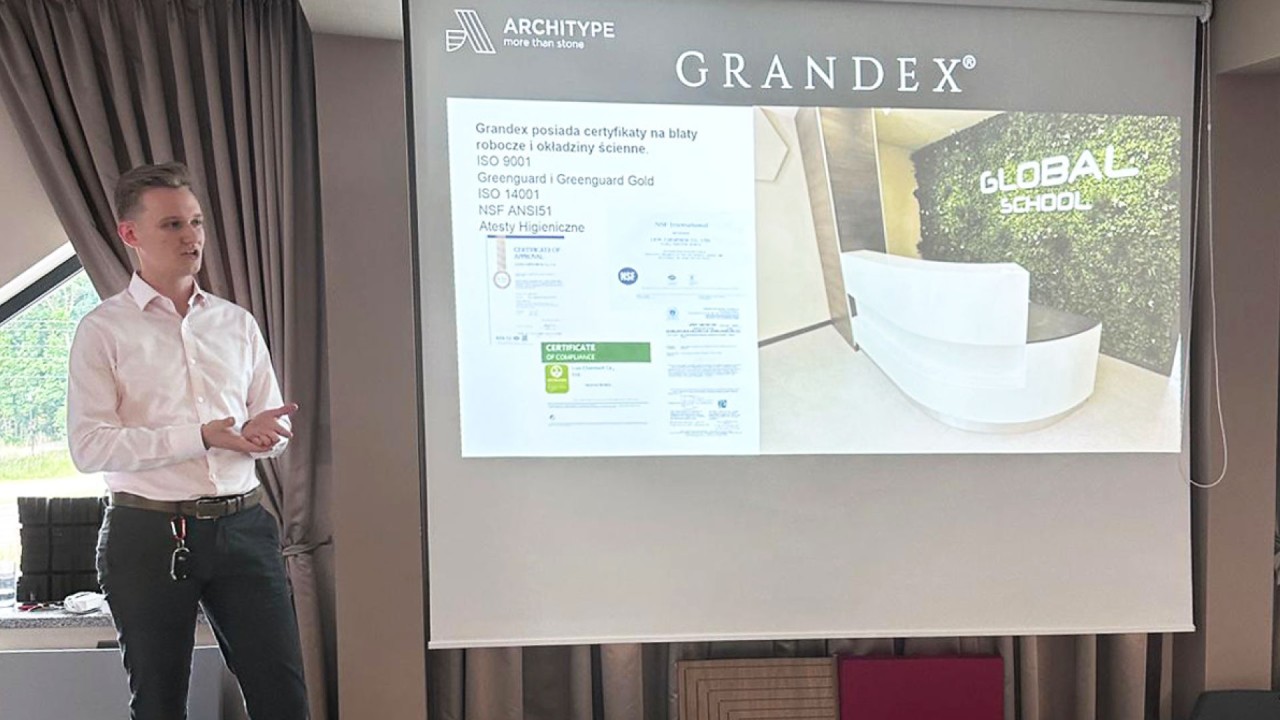 The prepared lecture was dynamic and stole the attention of our audience. They were eager to ask questions during the presentation. What interested them the most was the process of creating finished products from the GRANDEX acrylic solid surface, as well as its numerous possibilities in terms of application. At the end of the presentation, we prepared a competition for the participants to consolidate their knowledge of this fantastic material. The winners received a surprise made of... GRANDEX acrylic solid surface!