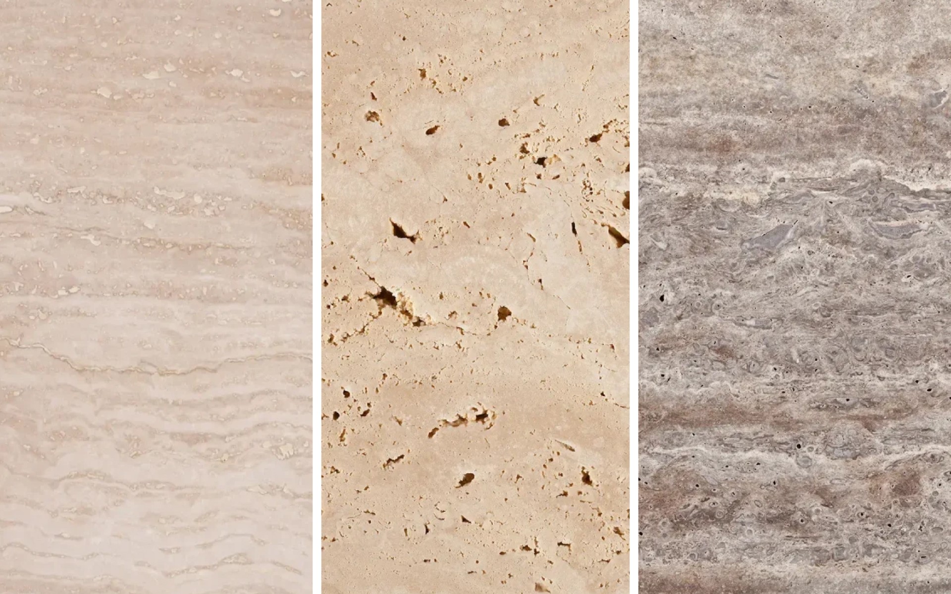 This stone has a warm, natural character and has been used to decorate buildings since ancient Roman times. Its porous structure and subtle shades of beige, brown and cream bring calm and harmony to any interior. Travertine works well in both classic and modern arrangements, including on walls, floors, stairs, countertops, islands and as decorative elements. It is a stone that creates a cosy atmosphere while referring to the rich history of architecture.