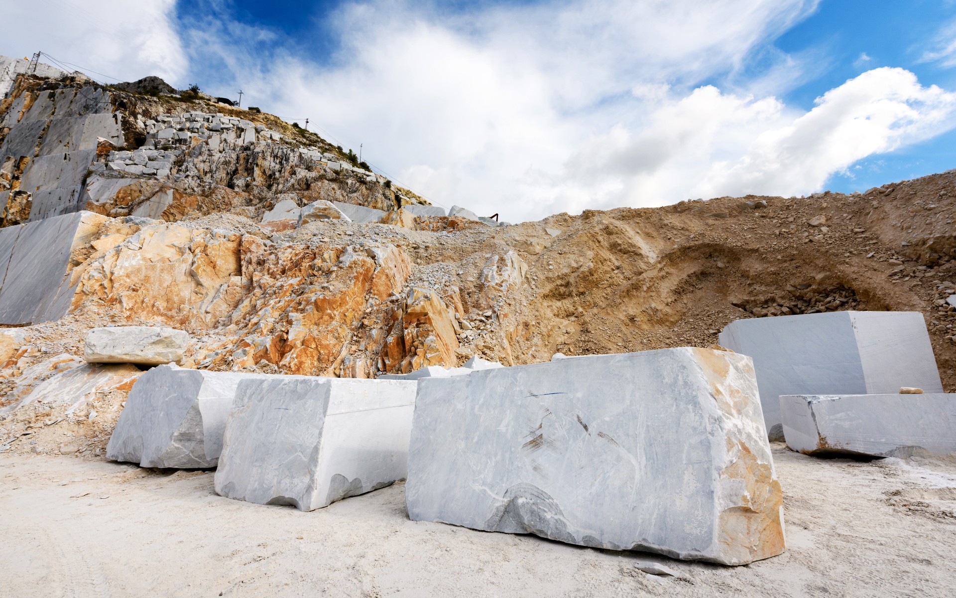 The stone's journey begins in the quarry. The extraction of blocks is a process that requires knowledge, experience and the right technology. Depending on the type of rock, different methods are used: from precise cuts with diamond wires, through drilling, to controlled blasting or the use of air cushions, which allow the block to be separated from the parent rock. The extracted blocks can weigh up to several dozen tonnes and only then do they leave the quarry before being transported to processing facilities.
